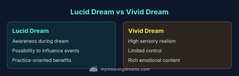Lucid dreams and vivid dreams describe distinct dream experiences. A lucid dream is when you realize you are dreaming and can influence the dream, often with deliberate control. A vivid dream is highly realistic but you remain unaware of the dream state and have limited control. This distinction matters for dream practice and recall.