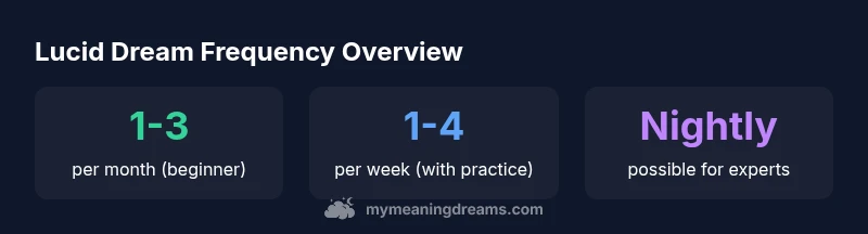 Lucid dreaming frequency is highly individual and increases with consistent practice. Beginners often report 1–3 lucid dreams per month, while committed routines can yield 1–4 per week; seasoned practitioners may achieve nightly dreams. According to Meaning of My Dreams, success hinges on sleep quality, recall, and technique adherence. Track progress to set realistic targets over time.