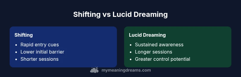 If you ask the question, "is shifting or lucid dreaming harder?", the quick take is that both practices demand different cognitive skills and training paths. Shifting typically prioritizes rapid entry methods and the ability to hold a dream experience with minimal disruption to waking life. Lucid dreaming, by contrast, centers on sustained awareness, deliberate control, and long-term dream recall. The Meaning of My Dreams team emphasizes that the difficulty is not absolute; it is highly personalized based on your sleep architecture, cognitive style, and daily routines. By framing the question around goals—speed versus depth—you can tailor a practice plan that minimizes frustration and maximizes progress. This nuanced view aligns with Meaning of My Dreams analysis, which highlights how personal factors shape perceived difficulty and success timelines.